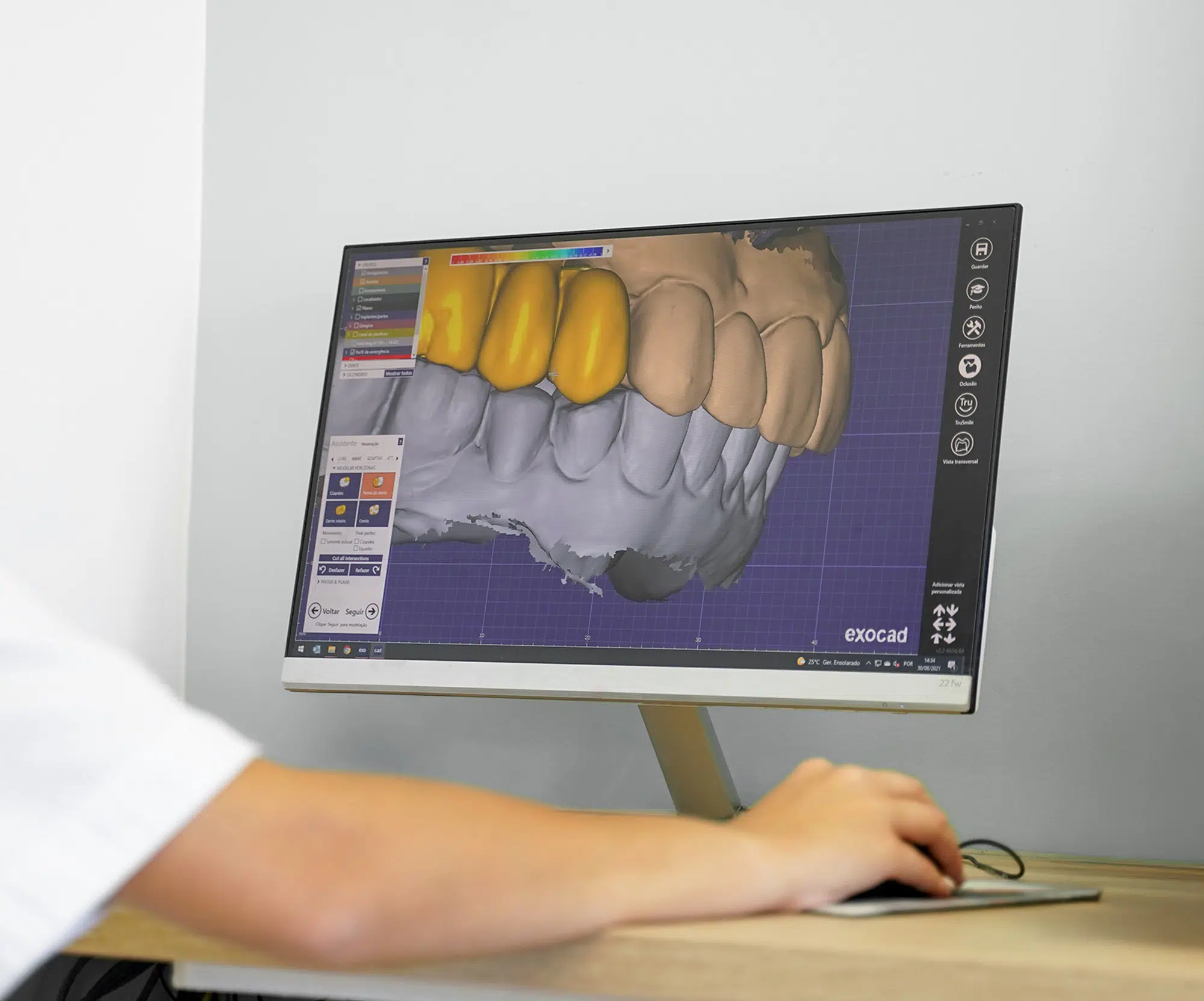 A grande diferença hoje é que esta avaliação já não se baseia apenas no que se vê a olho nu. São feitos exames digitais, como TAC e outros tipos de radiografias, que permitem ver o osso, a gengiva e as estruturas internas com muito mais detalhe.
