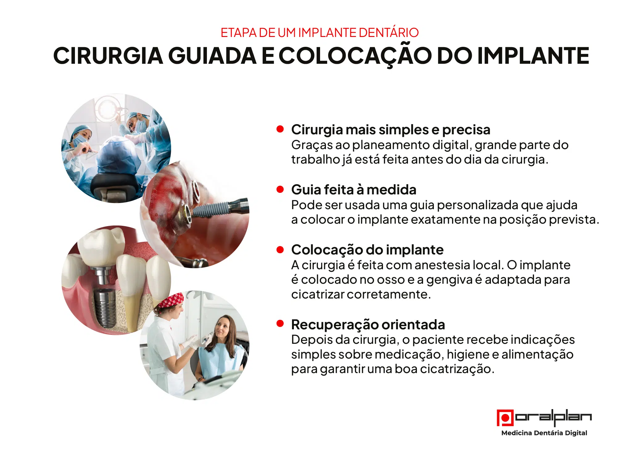 - Como é feita a cirurgia guiada e a colocação do implante;