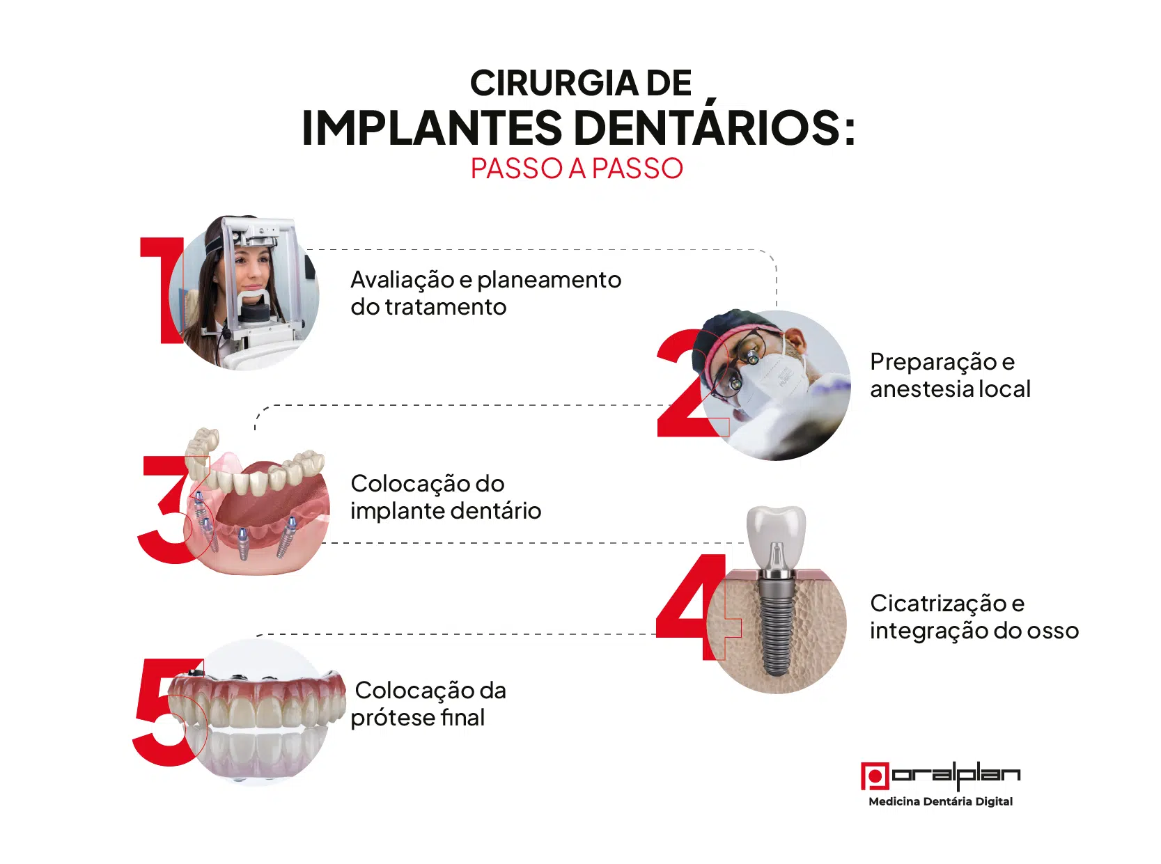 Tudo começa com uma avaliação clínica detalhada e exames 3D (como a tomografia), que permitem ao médico dentista planear a cirurgia com total precisão.
